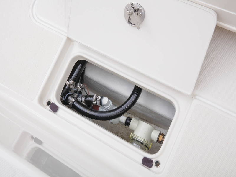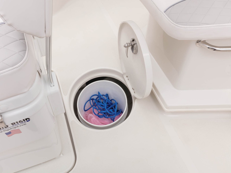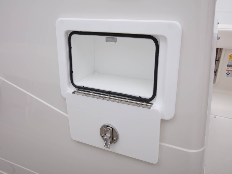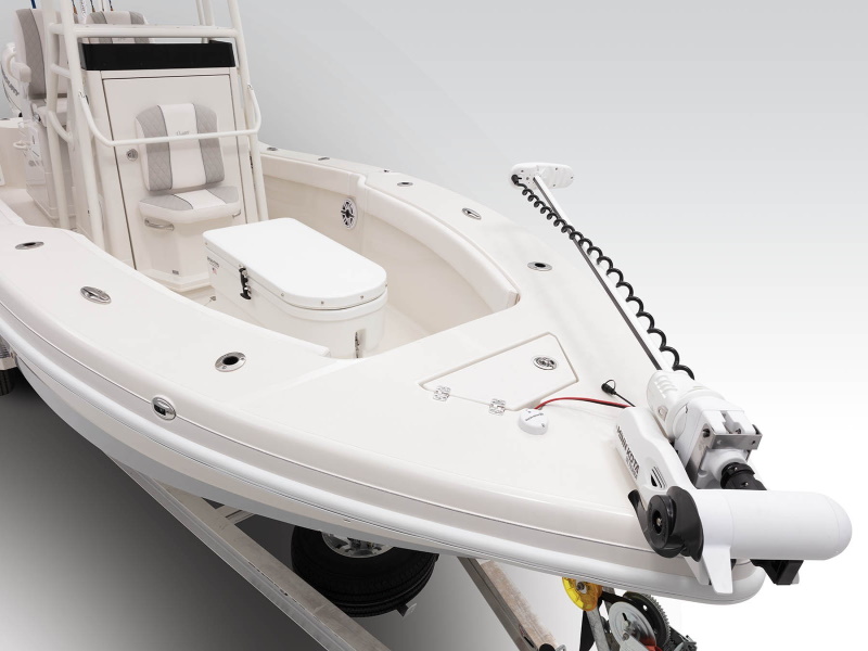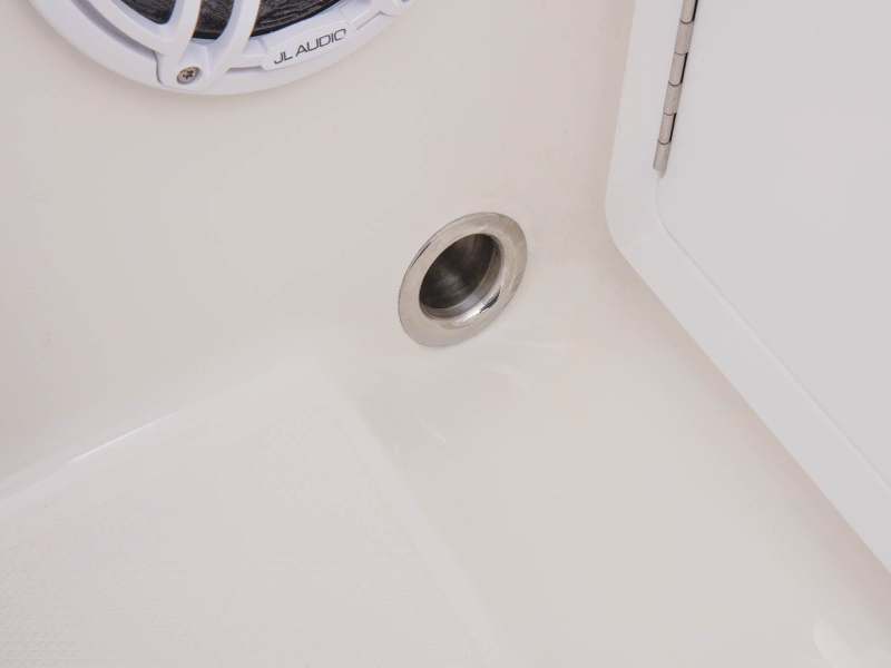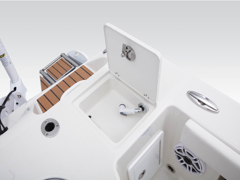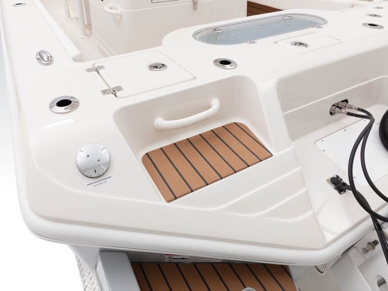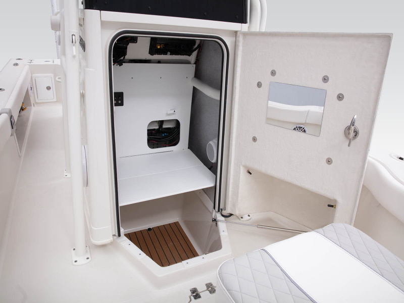 - Custom fitted premium marine upholstery - leaning post w/ mezzanine seating, baitwell/cooler and storage