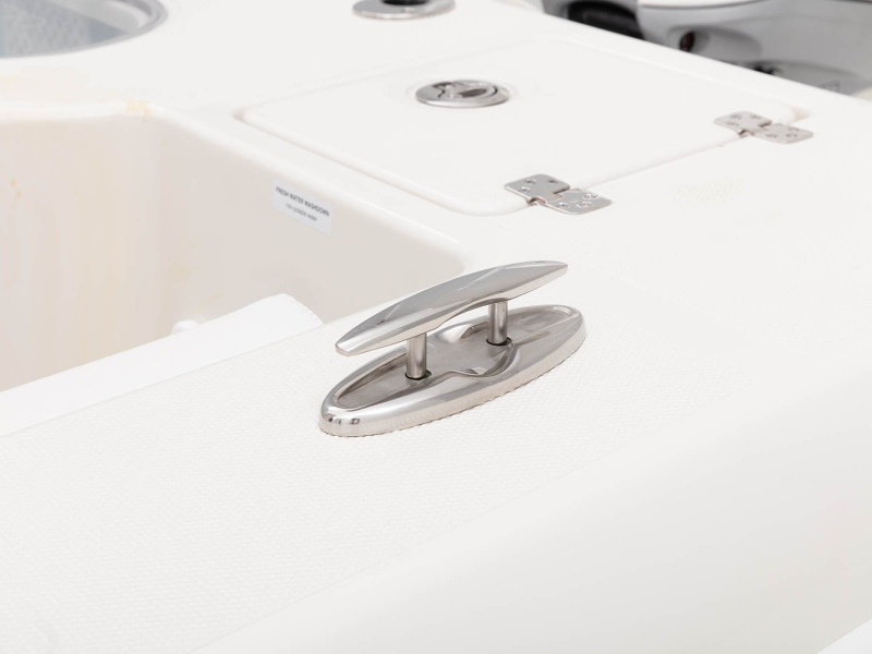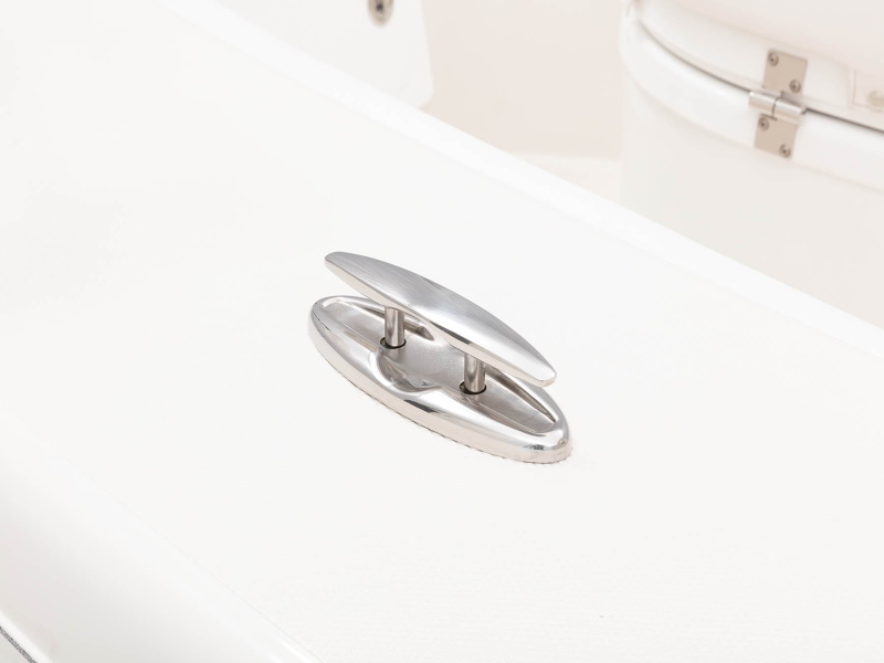 - 7 Stainless steel pull up tie cleats/ fore, aft, & midship