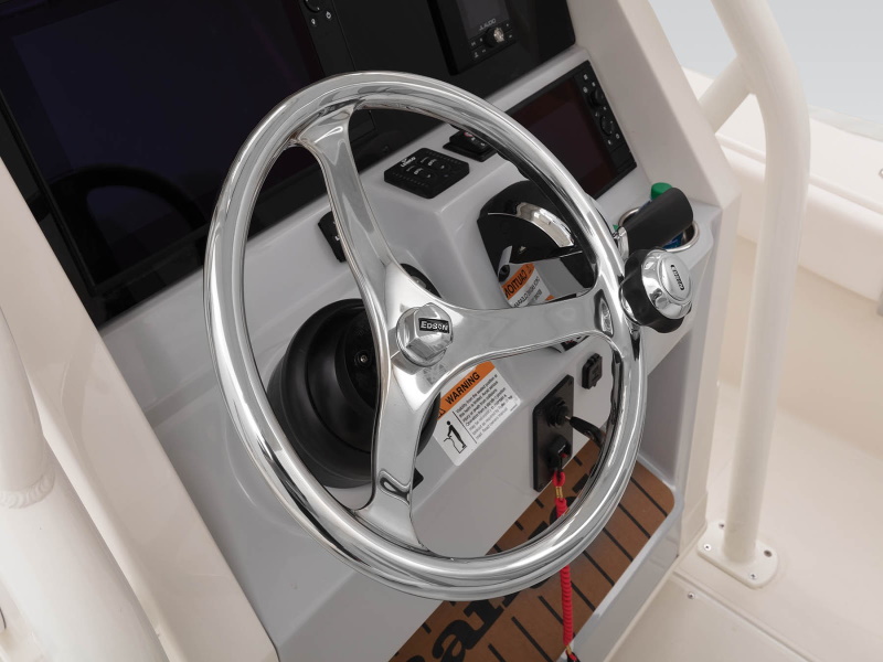 - Edson Comfort Grip stainless steel steering wheel w/ assist knob