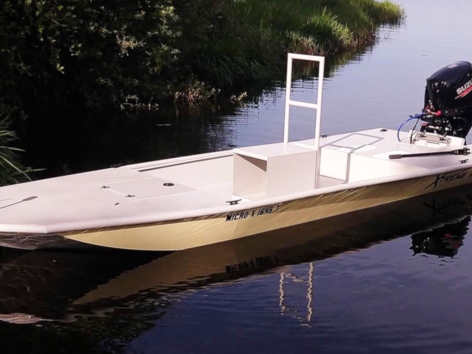 Our ultra low draft Micro-X aluminum boat is ideal for shallow water swamps, bayous, creeks, rivers, lakes and bays. Available in 13 to 18-foot configurations with tiller steering or stick steering. Reach the shallowest waters in a full-featured aluminum low draft boat, built for the most dedicated anglers.