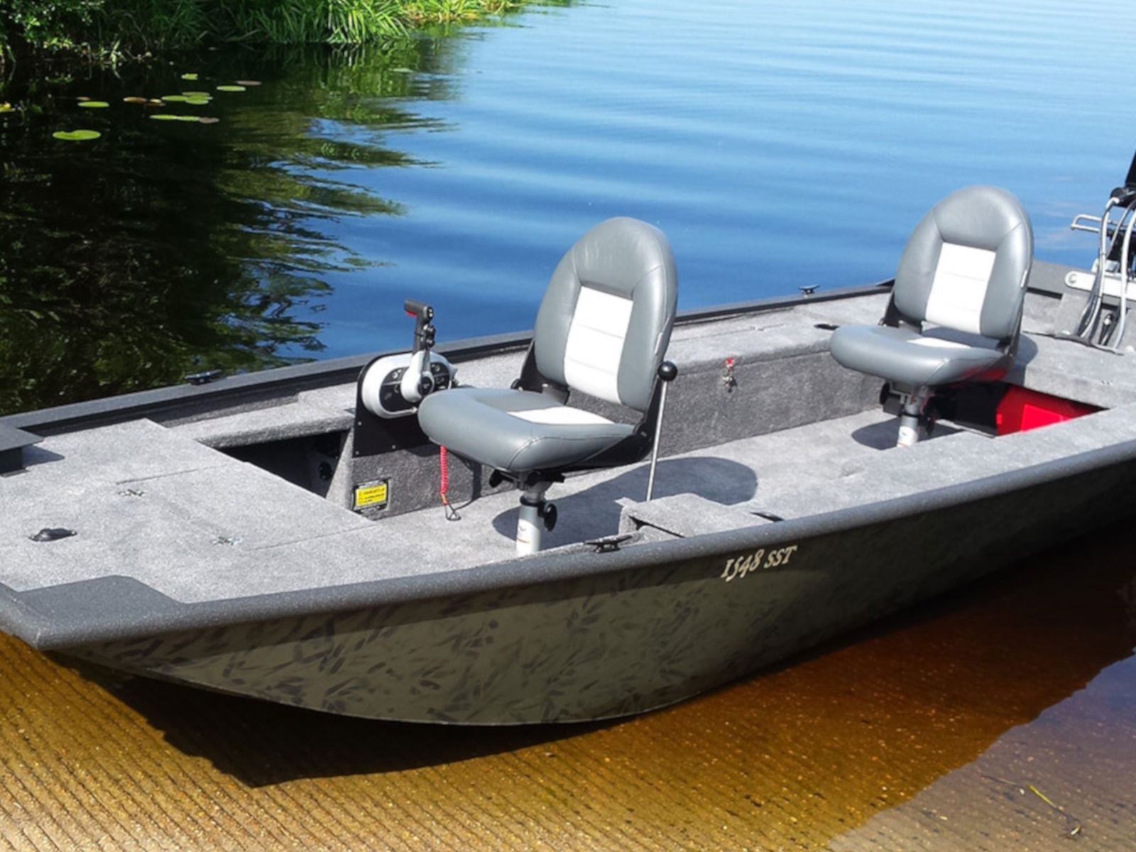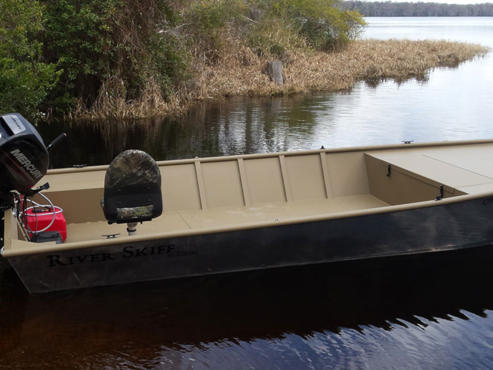 Xtreme Boats’ rugged, shallow-drafting, flat-bottomed river boat — The River Skiff — features an all-welded hull with thick marine-grade aluminum. River Skiff comes in bottom widths of 42, 45, 48, 54, 60 and 72 inches and lengths of 15, 16, 17, 18, and 20 feet.