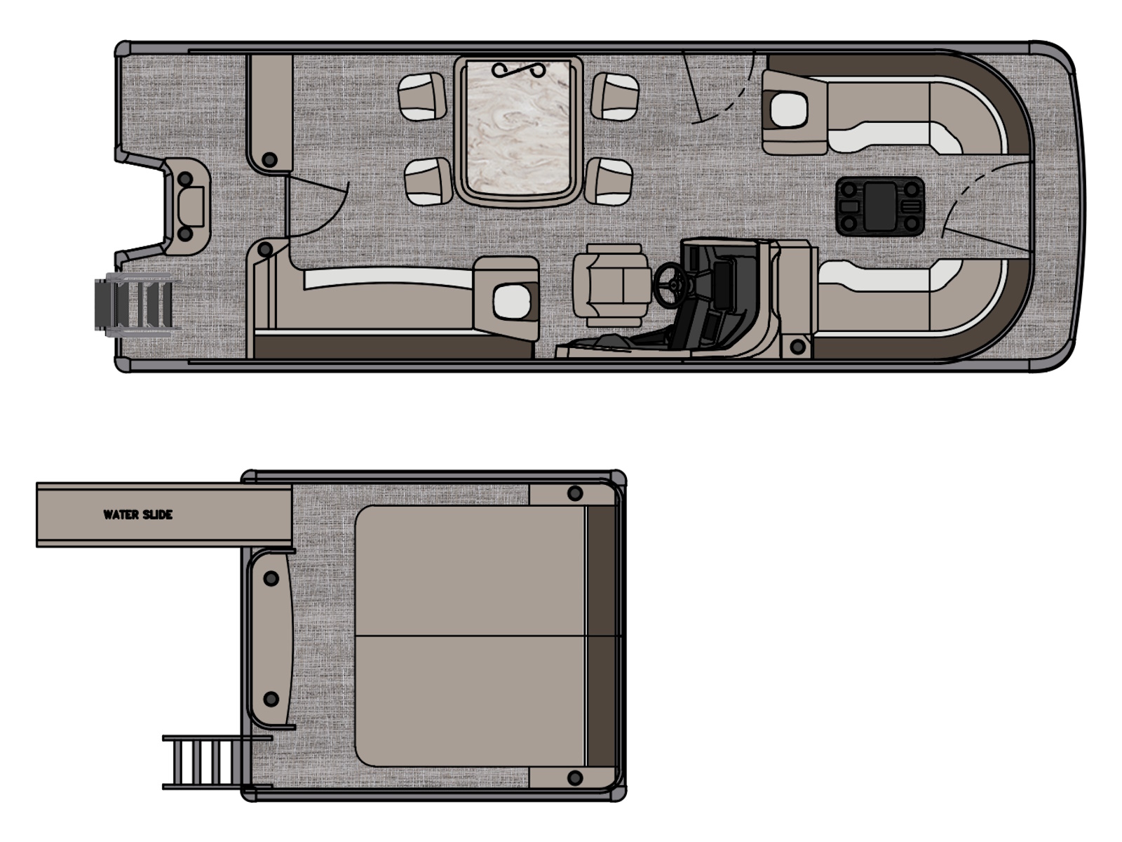 • Upper deck furniture – includes backs, arms, sun pads, rear console with (2) speakers on the upper deck (CRFS, ENTFS)