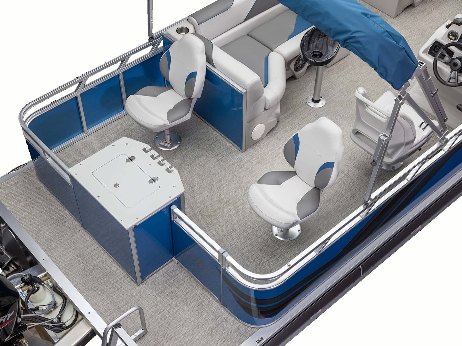 - Rear fishing center with rod holders & livewell