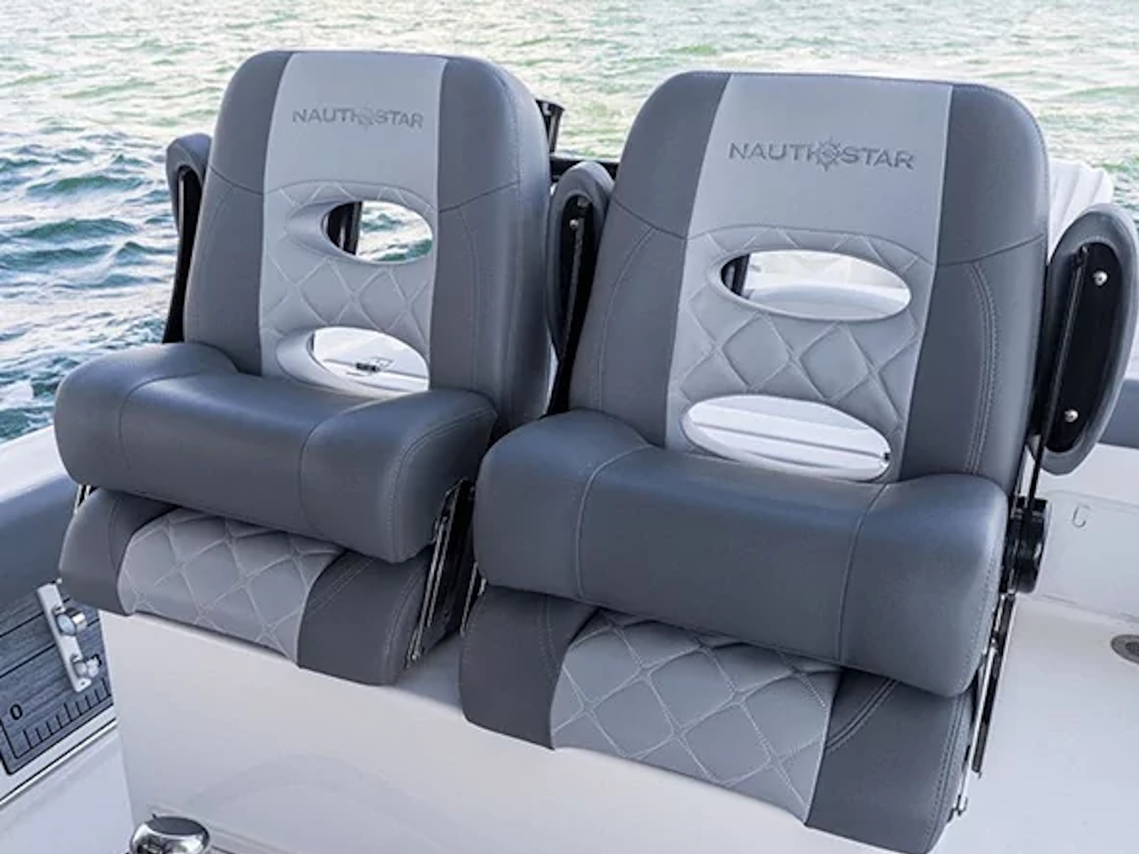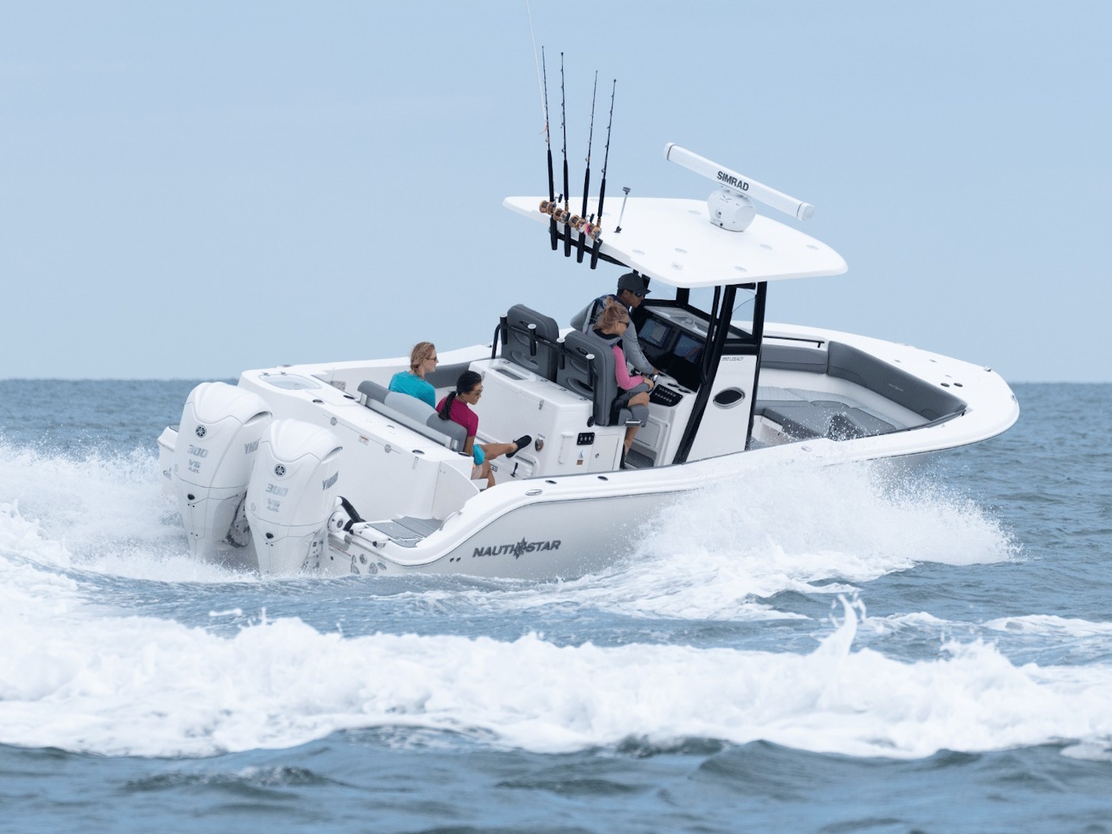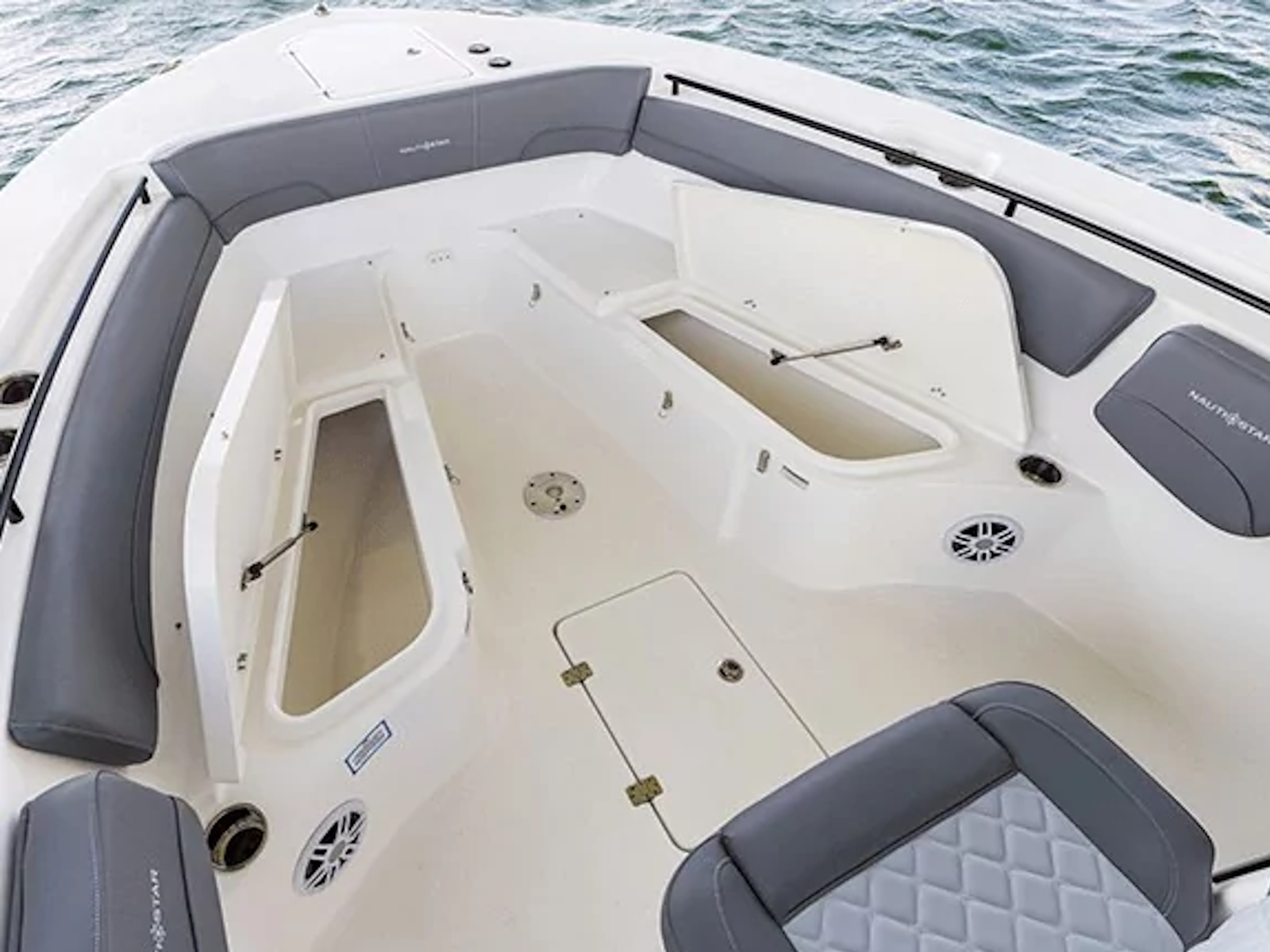 NauticStar’s 292 Legacy meets the demands of serious offshore fishing. A 50-degree deadrise at the bow means a soft ride, and reverse chines get you up on plane quickly, providing extra lift. Plus, the extreme bow flair slices through the chop and diverts water.
