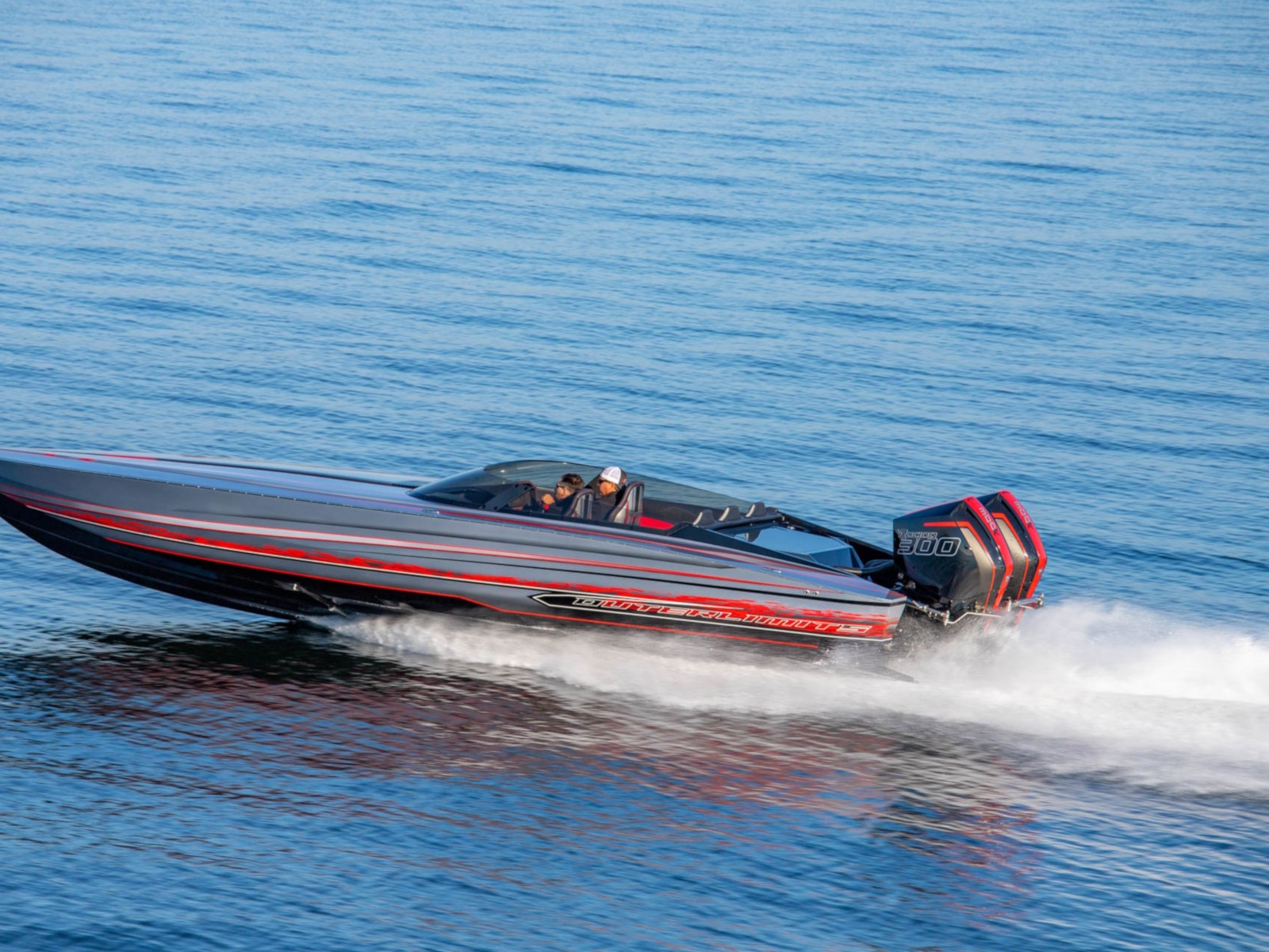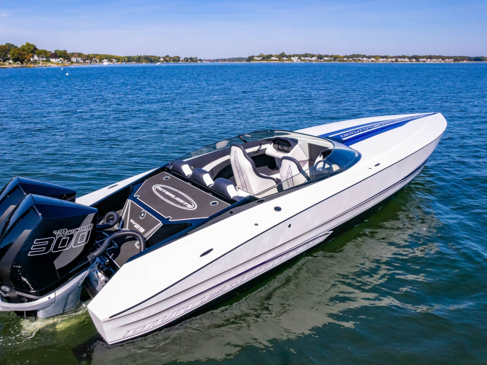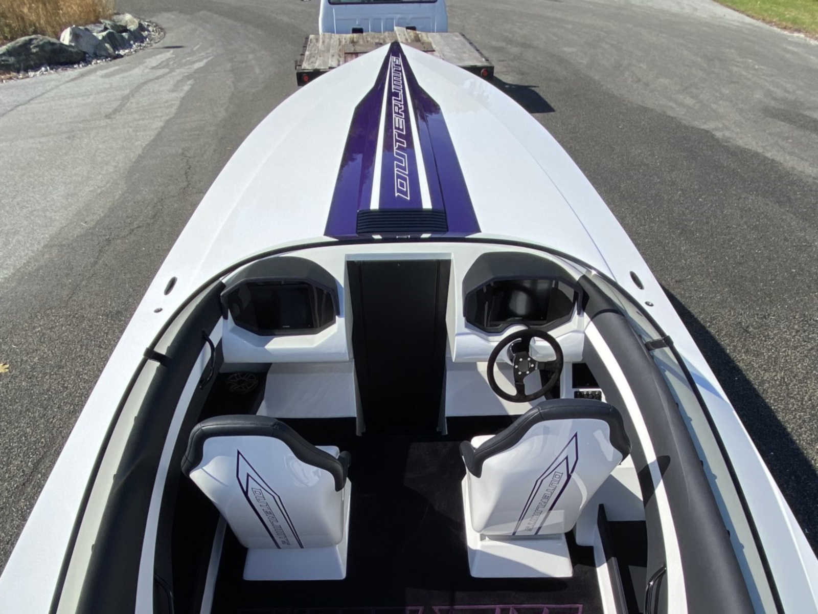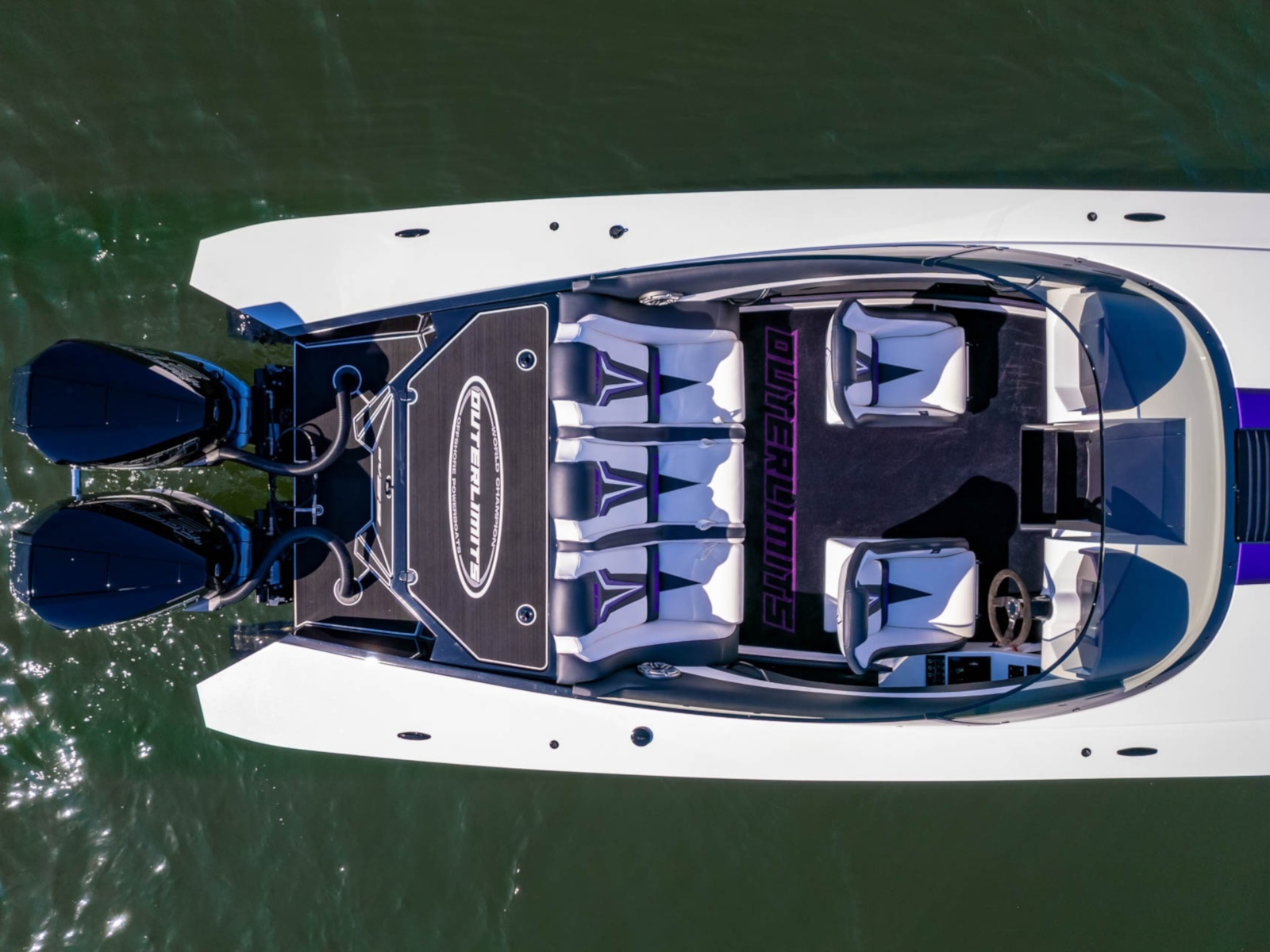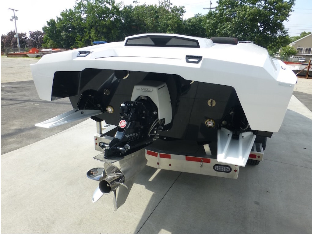 The SV29 has proven to be a world champion on the race course, dominating its class. The SV29 encompasses Outerlimits legacy of, speed, handling and ergonomics. Utilizing Outerlimits state of the art E-glass post-cured epoxy lamination, makes it the strongest 29ft vee bottom on the market. As in true SV fashion, the SV29 is a race inspired breed. Two adjustable, form fitting race style bucket seats and a bench style rear, ensures passengers of a comfortable race style experience. Full wrap around windshield provides ample wind protection for all occupants. The SV29 proves to be a family friendly speedster. Speed, Handling, and quality have been a hallmark of Outerlimits for over 30years and the SV29 is no exception. Speeds of over 95mph are achievable with a single Mercury 565 engine package, and can break 100mph with twin Mercury Racing 300R Outboards. Come experience the unforgettable ride of an Outerlimits SV29 and Live Fast!