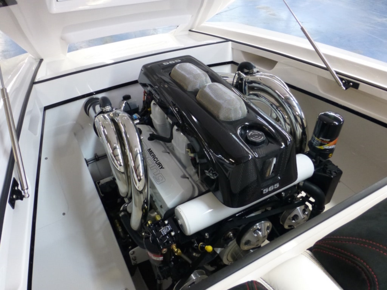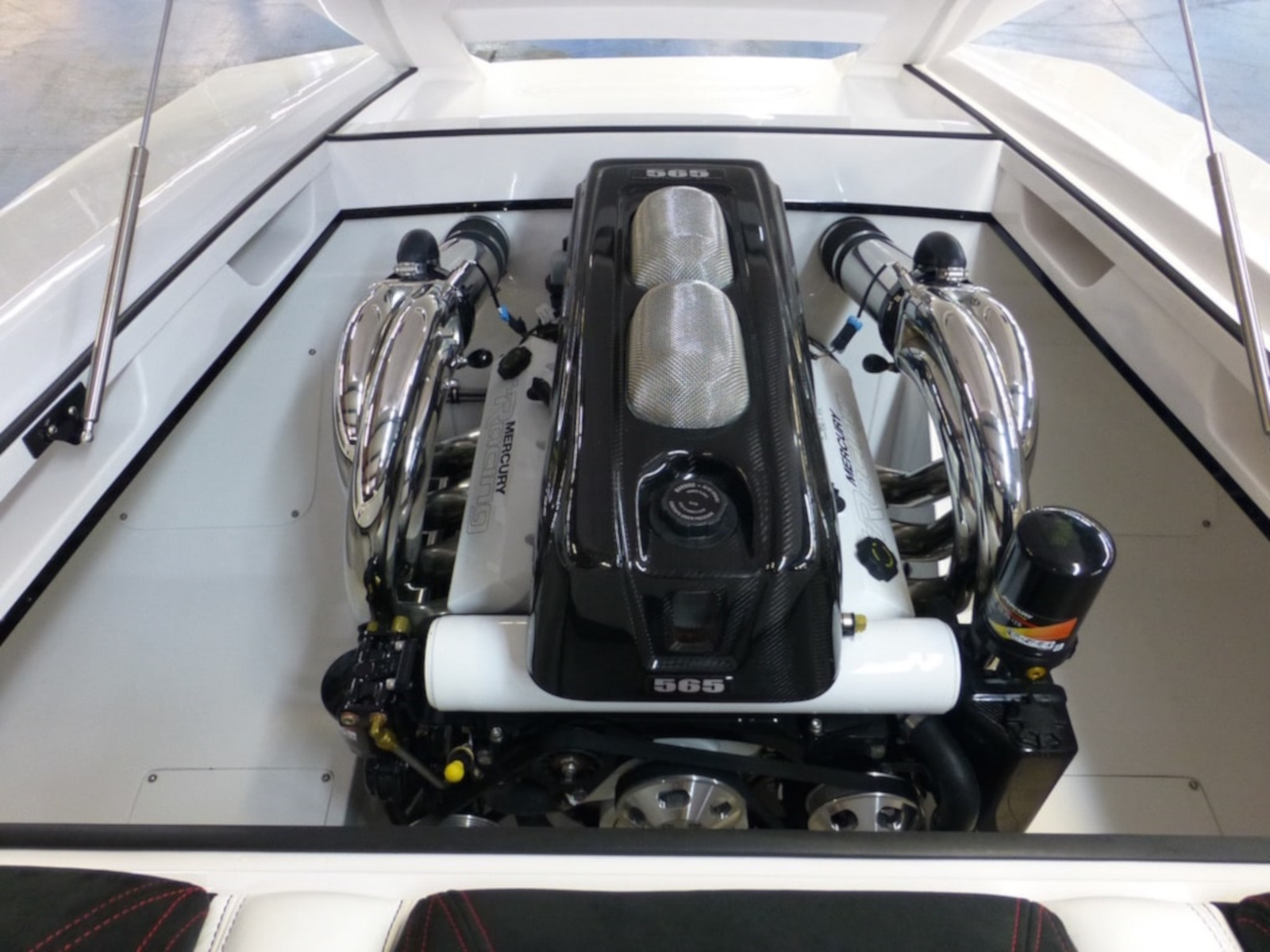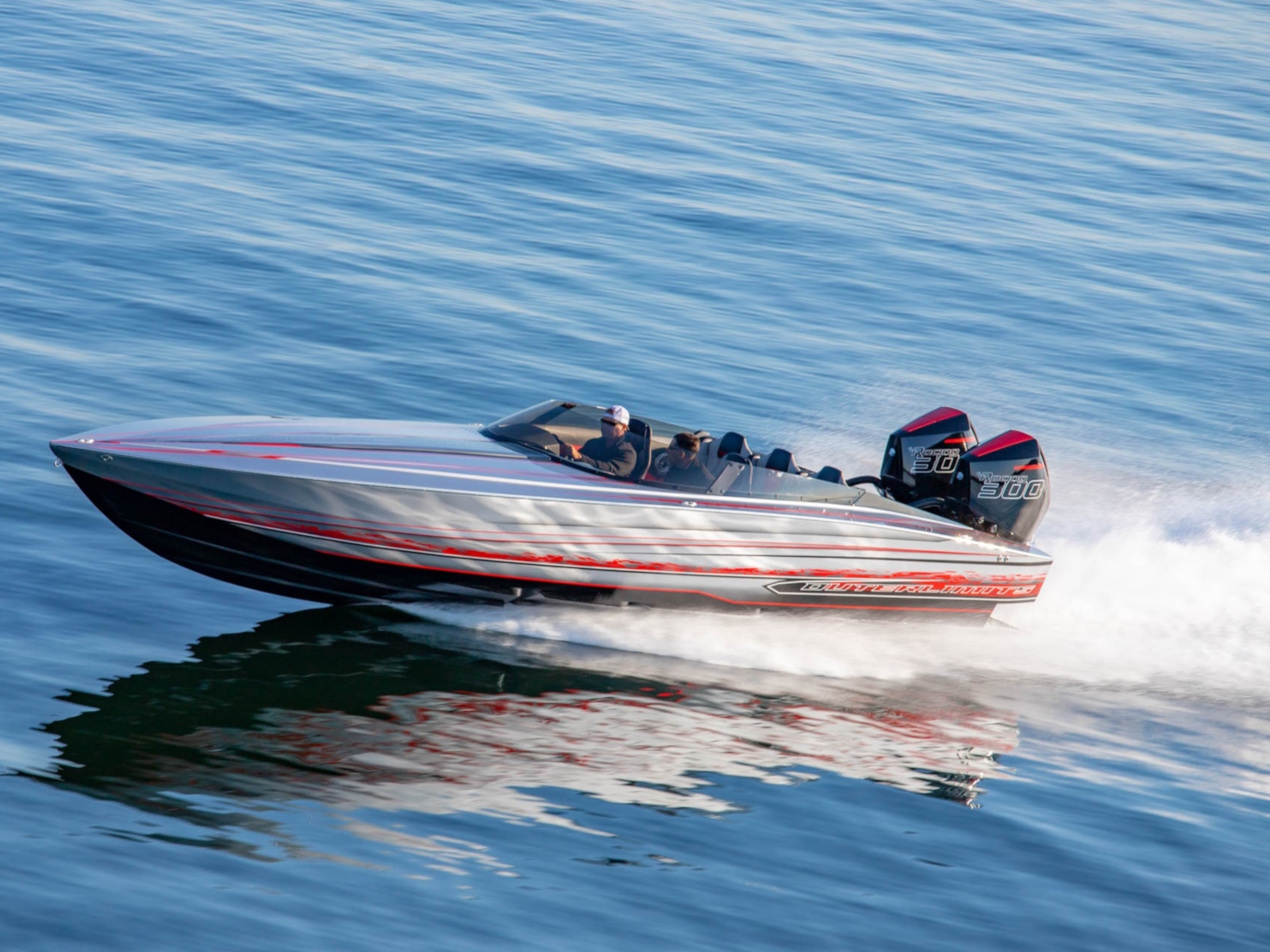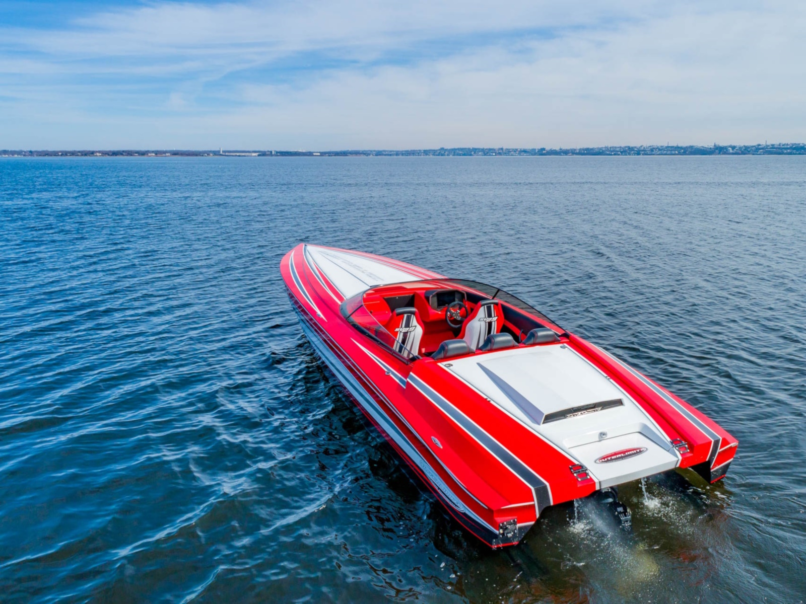 The SV29 has proven to be a world champion on the race course, dominating its class. The SV29 encompasses Outerlimits legacy of, speed, handling and ergonomics. Utilizing Outerlimits state of the art E-glass post-cured epoxy lamination, makes it the strongest 29ft vee bottom on the market. As in true SV fashion, the SV29 is a race inspired breed. Two adjustable, form fitting race style bucket seats and a bench style rear, ensures passengers of a comfortable race style experience. Full wrap around windshield provides ample wind protection for all occupants. The SV29 proves to be a family friendly speedster. Speed, Handling, and quality have been a hallmark of Outerlimits for over 30years and the SV29 is no exception. Speeds of over 95mph are achievable with a single Mercury 565 engine package, and can break 100mph with twin Mercury Racing 300R Outboards. Come experience the unforgettable ride of an Outerlimits SV29 and Live Fast!