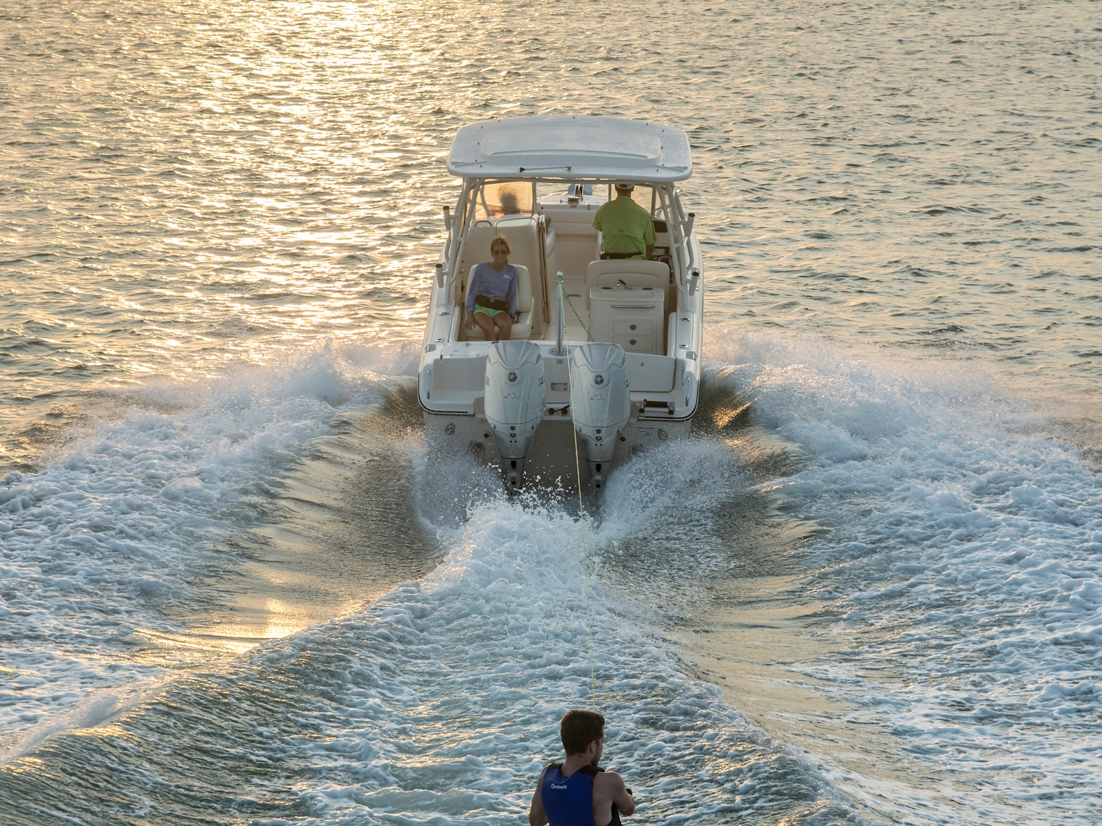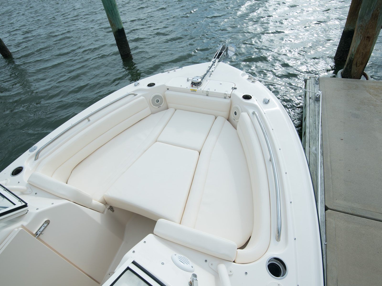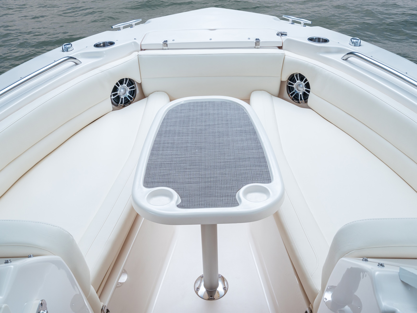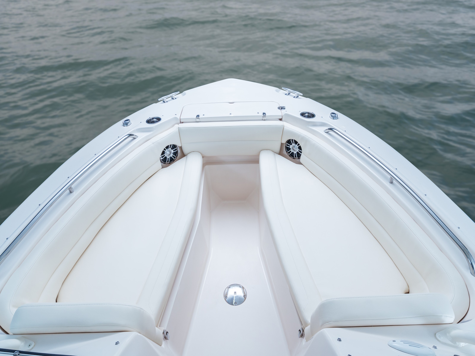 A saltwater fishing and family cruiser, this unsinkable 25-foot dual console boat comes with deluxe seating and plenty of convenient storage for sport fishing gear, water toys, and picnic and camping equipment. You’ll get to offshore fishing grounds quickly and in comfort on the award-winning SeaV²® hull with the twin 200 Yamaha engine package, one of three options for this multi-purpose, best-in-class dual console fishing boat. Plus, a spacious enclosed head area assures all-day comfort and enjoyment.