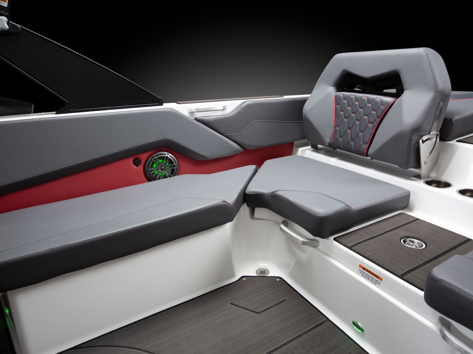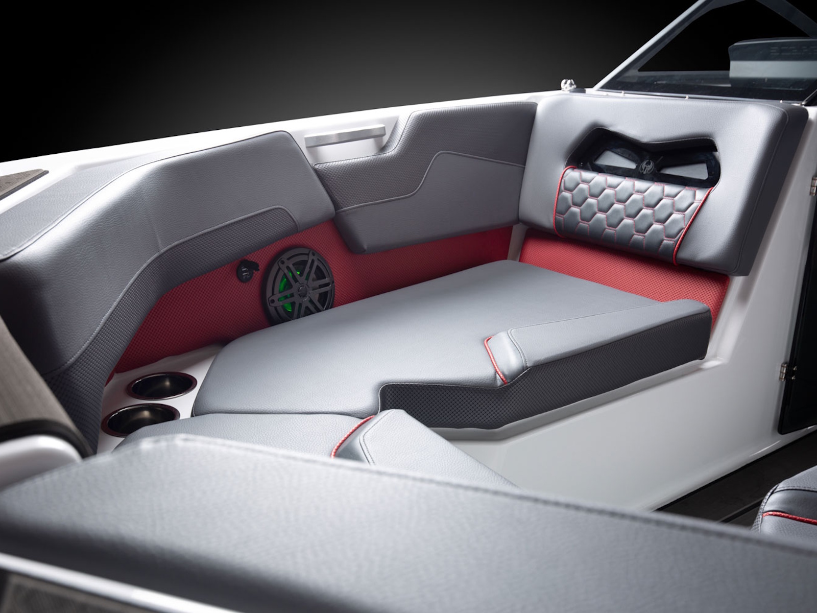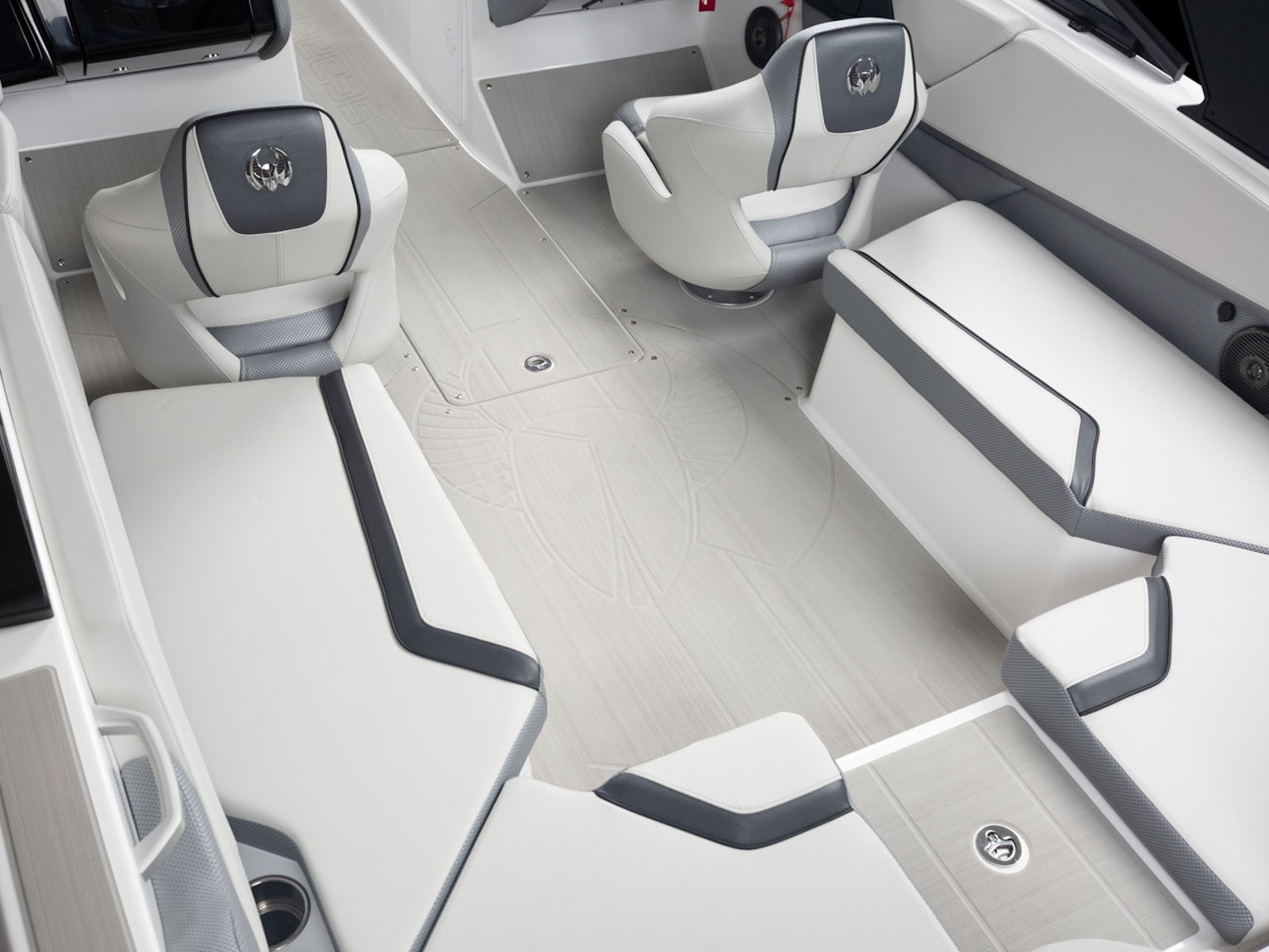 • Upholstery, superior custom-contoured vinyl w/ elevated edging for added comfort