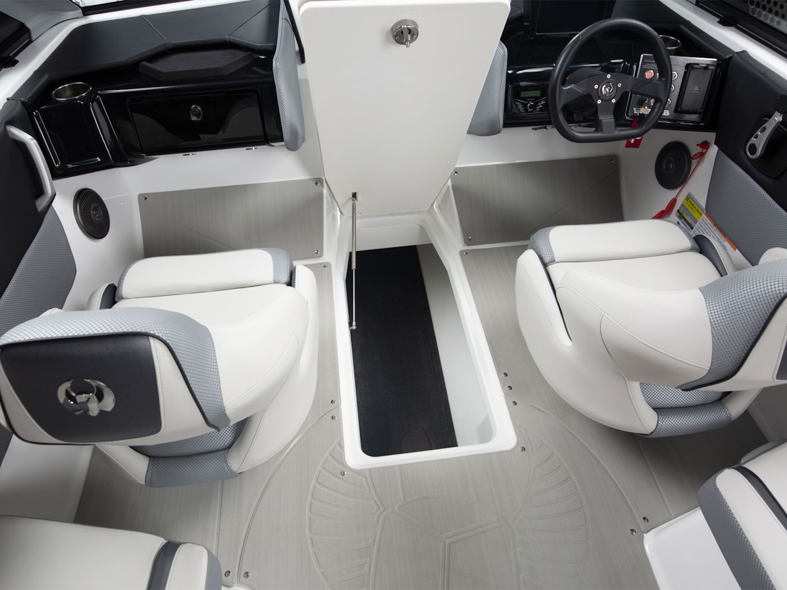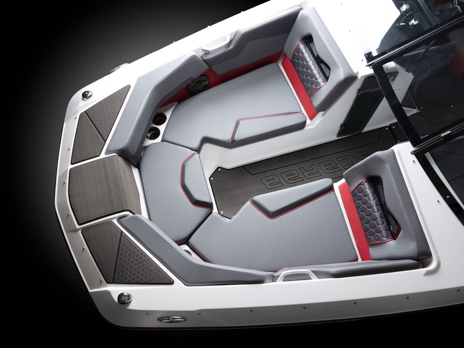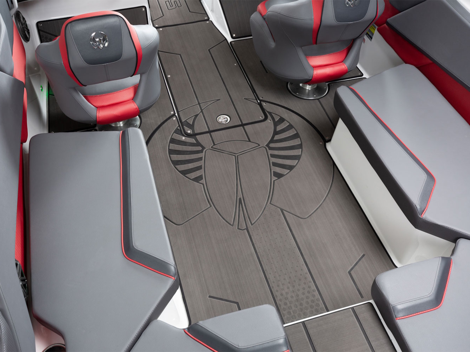 • Upholstery, superior custom-contoured vinyl w/ elevated edging for added comfort