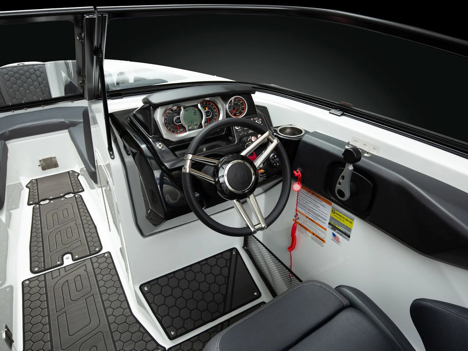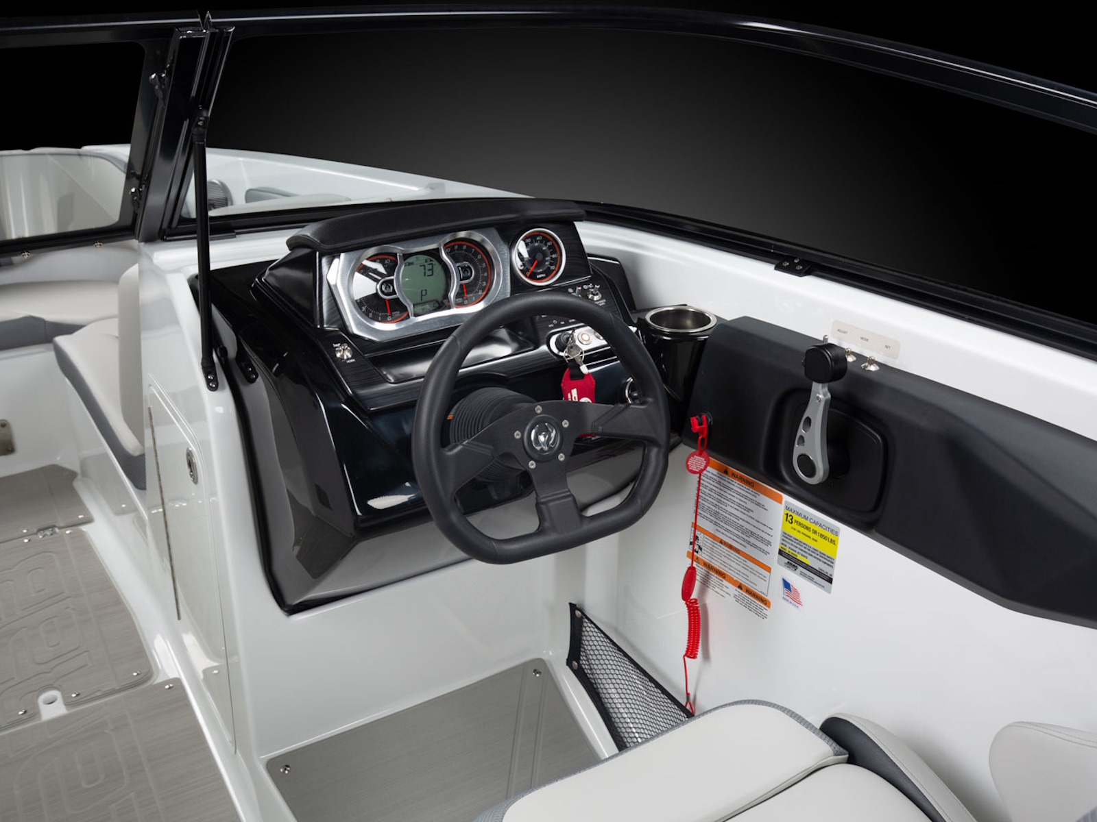- Instrumentation: Fuel Level, Fuel Consumption, Tach, GPS Speed, Hour Meter, Compass, Depth Finder, Oil, Volt, Overheat, Check Engine