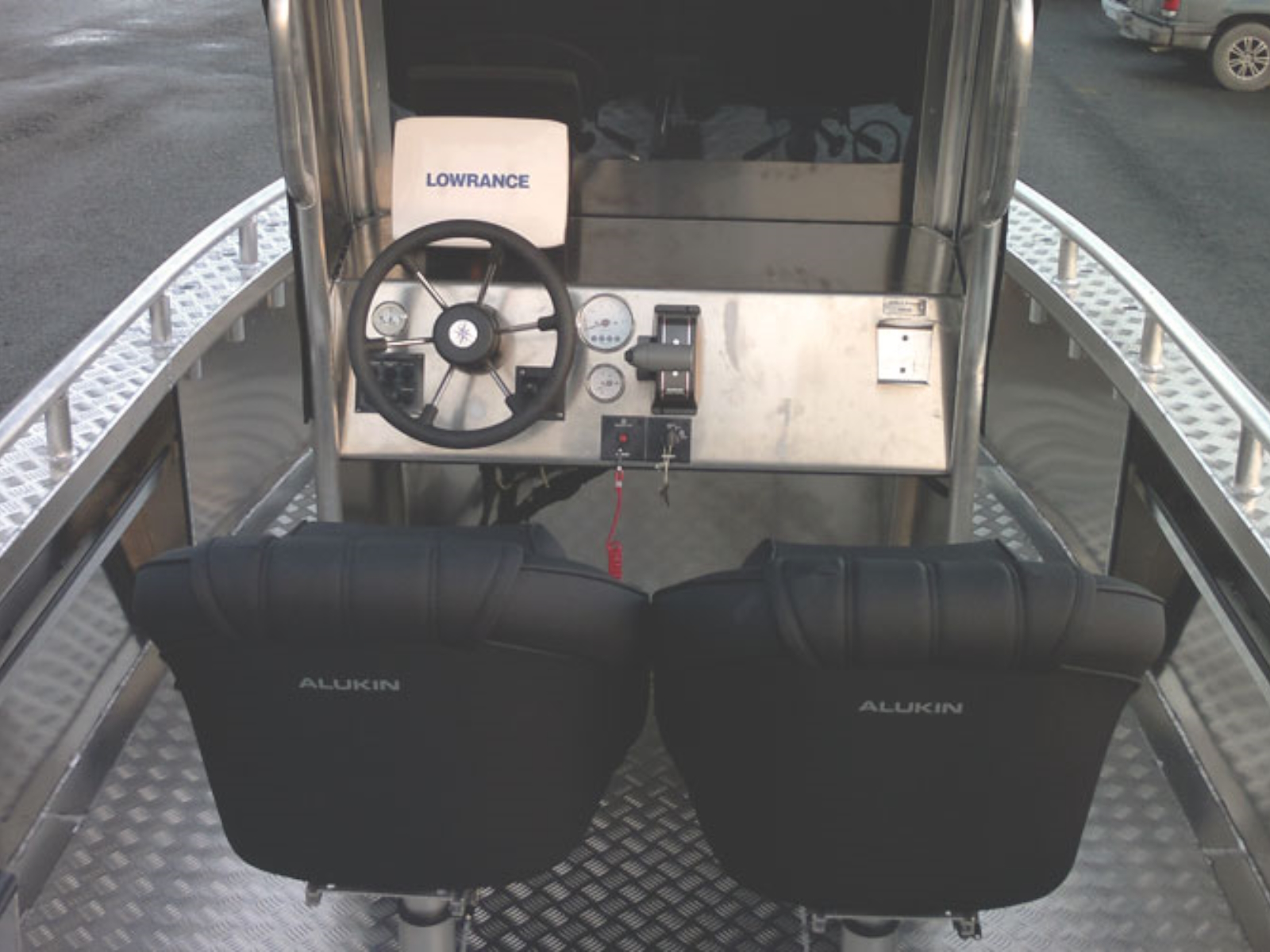 With a T-roof, large open surfaces, stability, and great nautical characteristics from ALUKIN, this model is perfect for long day trips during most parts of the year. Pro fishing 650 is, among other things, equipped with comfortable Flip-Up chairs and a broad center pulpit, providing protection from sea and wind for two people. There is also a sofa in the aft, big enough to seat four people. Contact us for more information!
