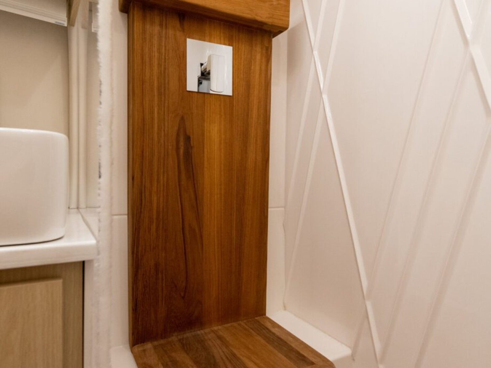 - TEAK FLOOR AND SEAT IN SHOWER
