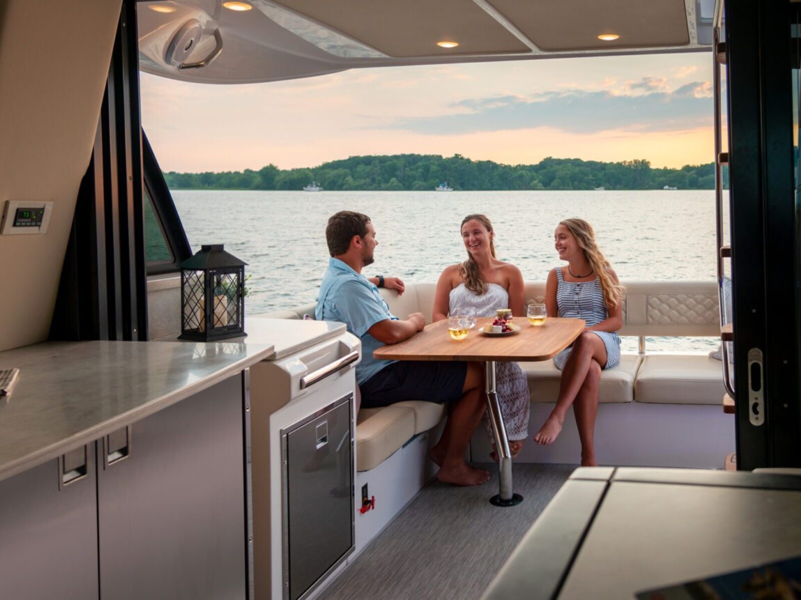- L-SHAPED SEATING AFT AND STARBOARD