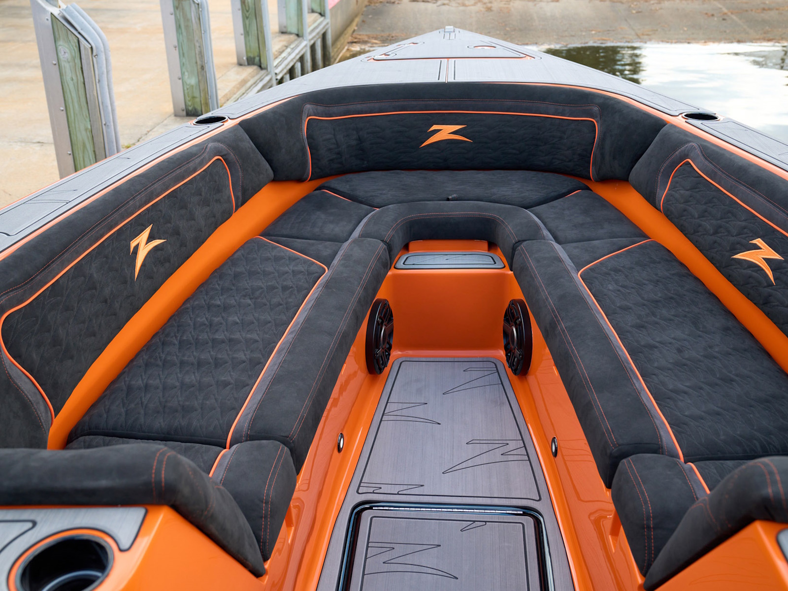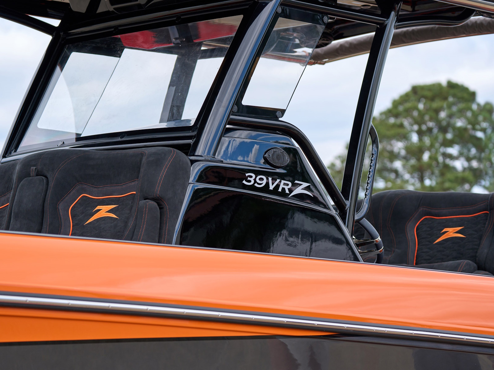 Showcasing a race-proven running surface, all new aerodynamic T-Top design or interior styling unlike anything on the water, the new Donzi 39VRZ is a game changer in many ways.