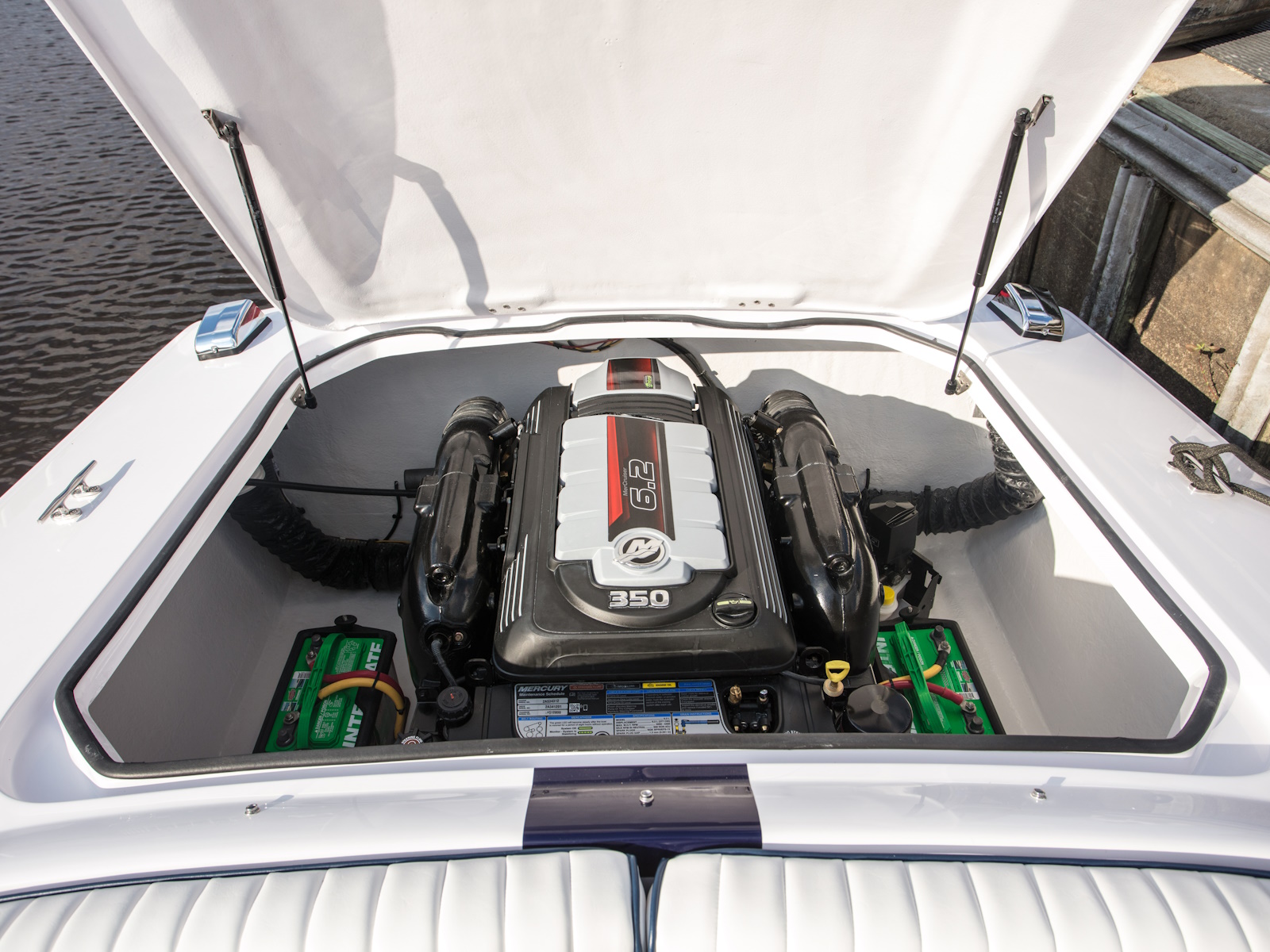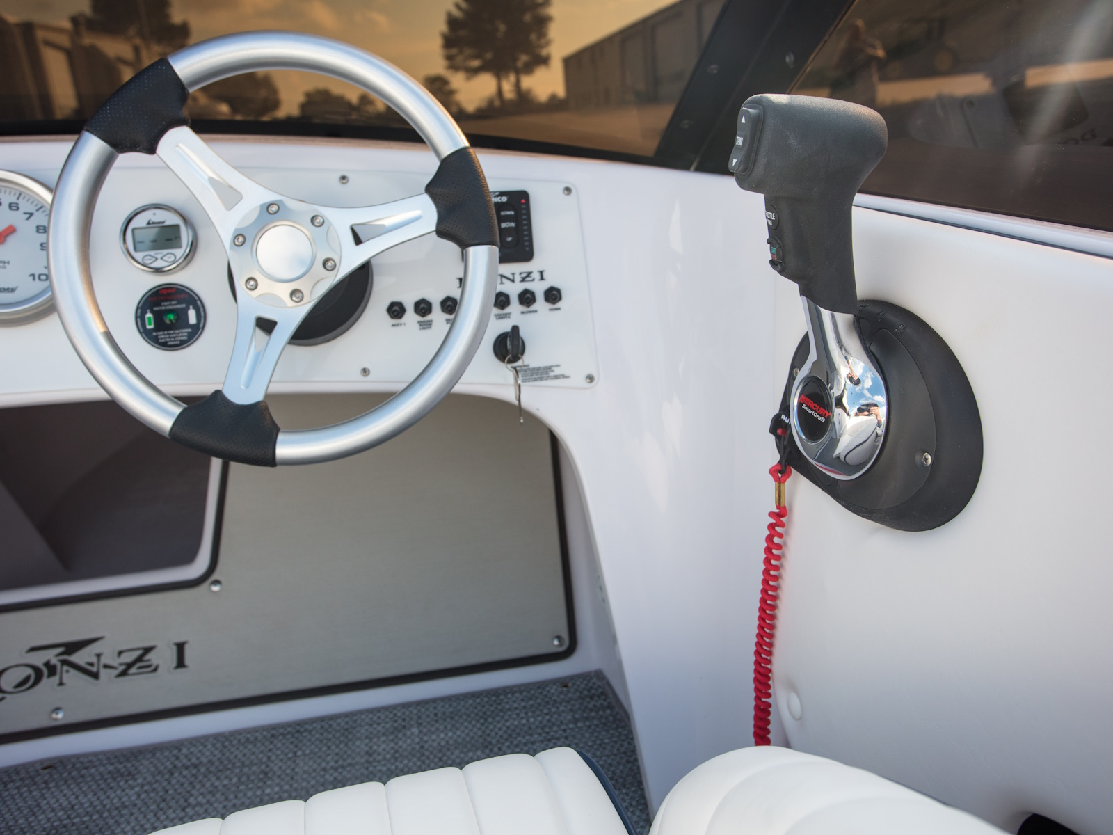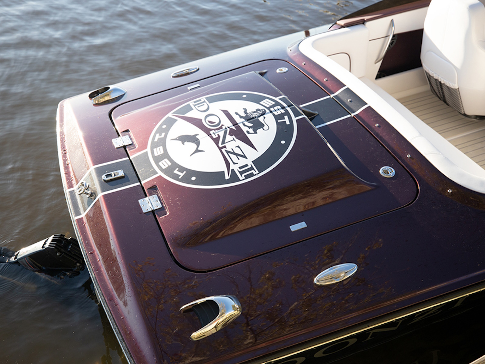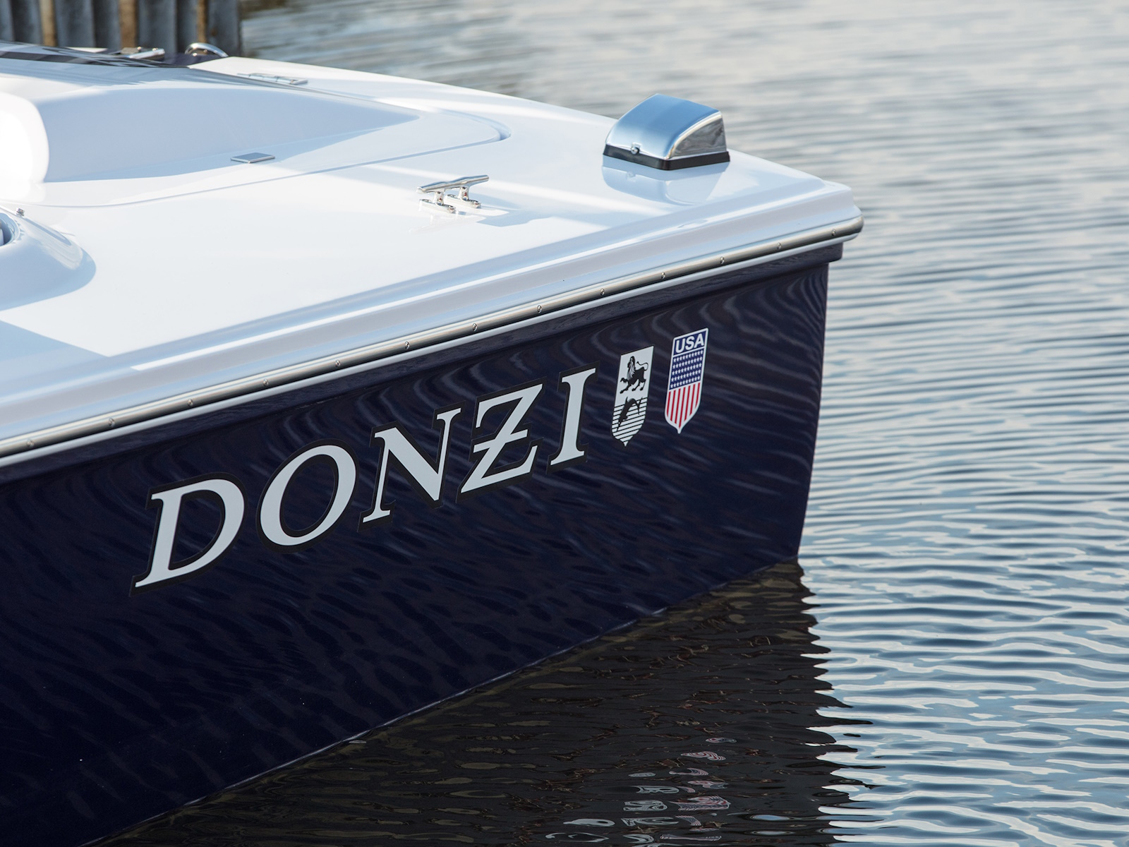 A certain head-turner, the legendary Donzi 22' Classic now includes a pad-keel bottom design, upgraded upholstery a next-generation dash and a Venturi windshield. In the engine compartment, you can rev all the way up to a Mercury Racing 565HP with Bravo 1 Short Sportmaster, ITS Gimbal and Steering, blueprinted bottom, Mercury 280 K-Plane Tabs, and a raised engine hatch. A high-performance Isotta steering wheel feels good to the touch. Marine Mat flooring is standard with Plasadeck custom flooring optional.